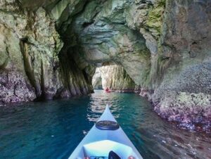 A abóbada da caverna desabou em tempos antigos devido à erosão marinha e agora pode ser visitada, embora se presuma que o acesso antes só era possível por pequenos barcos através do túnel natural que conecta a caverna ao mar.